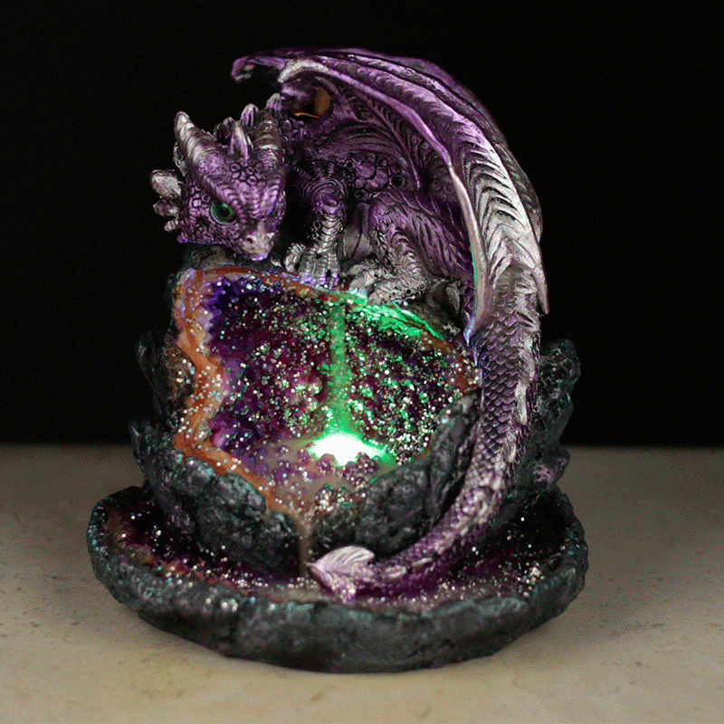 Stojánek na vonný kužel pro kouřový vodopád - Dračí mládě a křišťál s LED