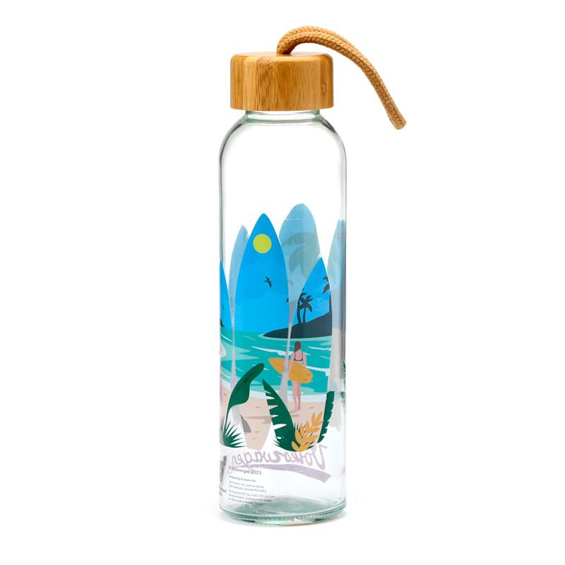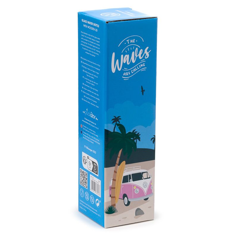 Skleněná láhev s bambusovým víčkem 500ml VW Volkswagen T1 karavan - Volání vln