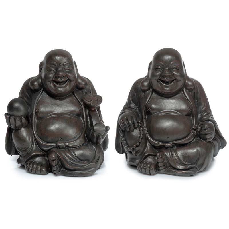 Figurka Šťastný čínský Buddha s dřevěným efektem Mír Východu - malý