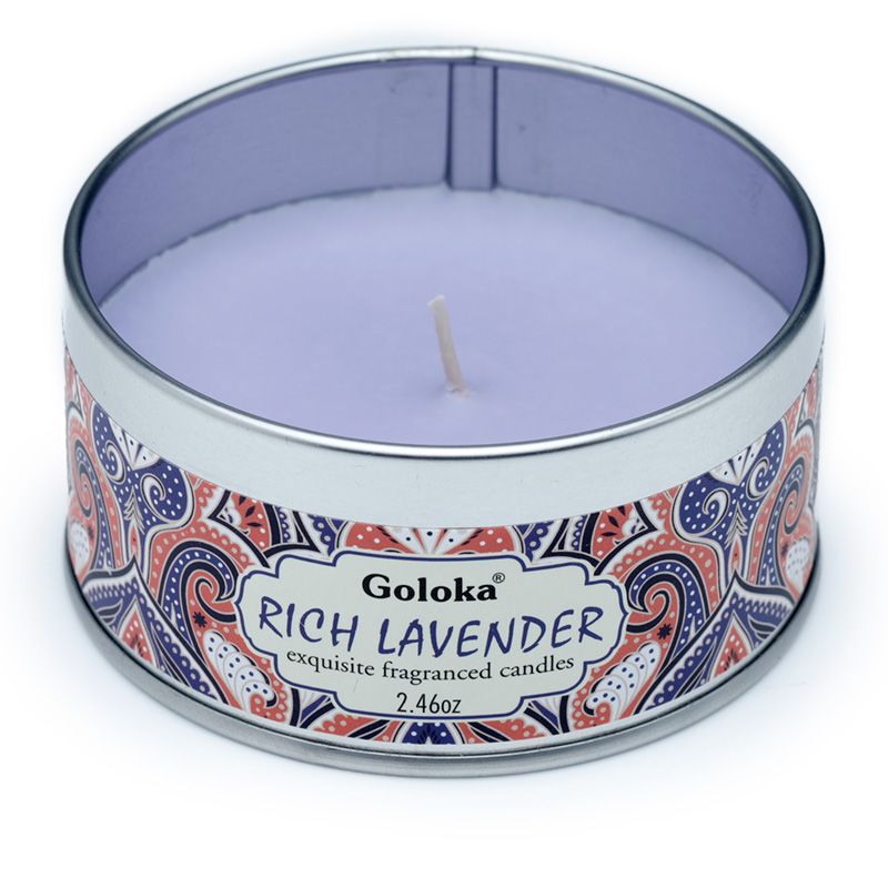 Svíčka v plechové krabičce Goloka Nag Champa Levandule