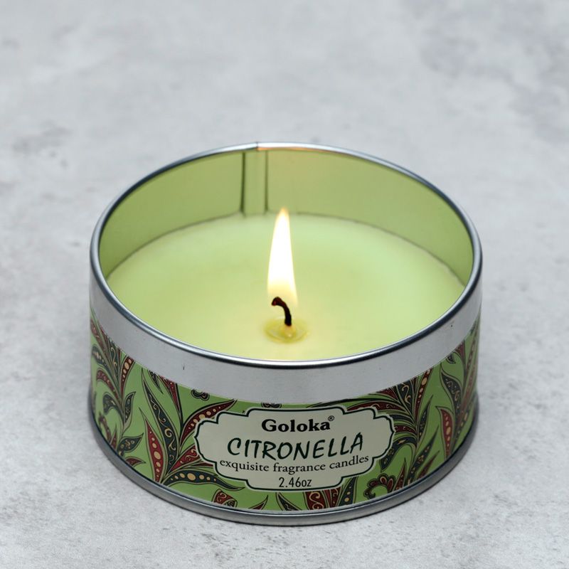 Svíčka v plechové krabičce Goloka Nag Champa Citronela