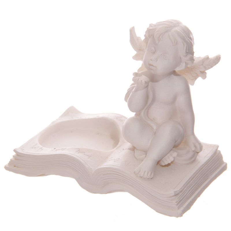 Cherub s knihou, stojánek na čajovou svíčku