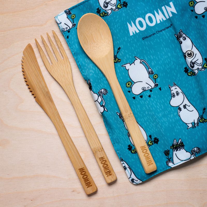 Sada 6 příborů ze 100% přírodního bambusu v plátěném obalu Mumínek