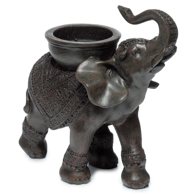 Svícen s dřevěným efektem Mír Východu Slon - hřbet