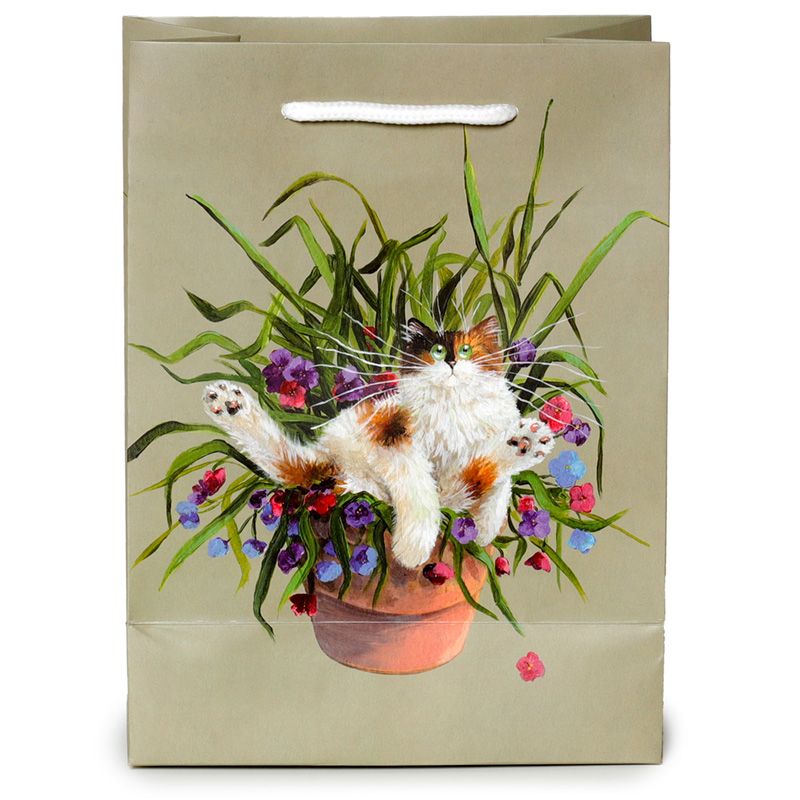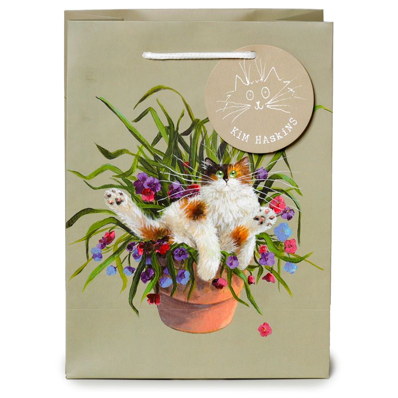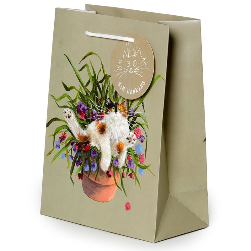 Dárková taška zelená Kočka v květináči, design Kim Haskins – střední