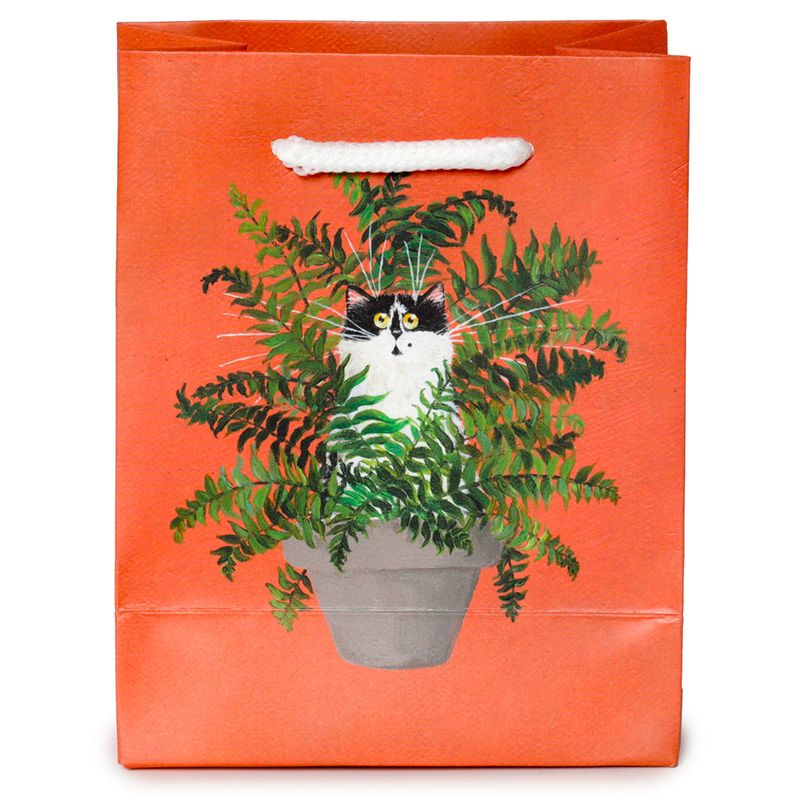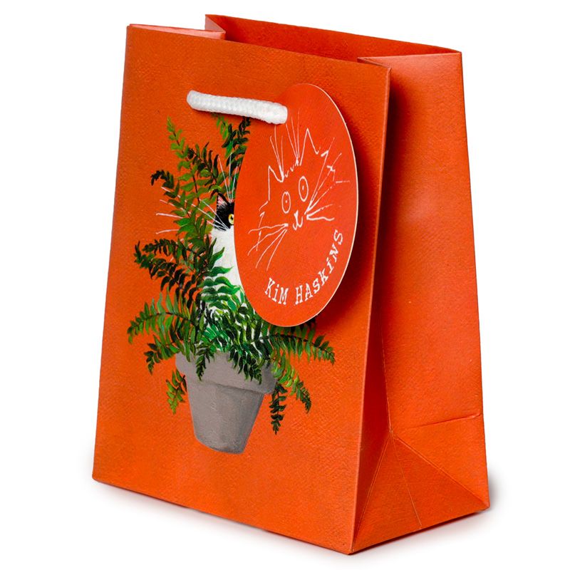 Dárková taška červená Kočka v kapradí, design Kim Haskins – malá