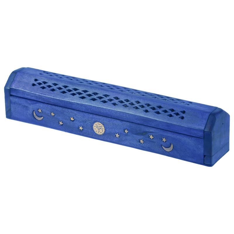 Krabička na vonné tyčinky z mangového dřeva-Slunce a měsíc