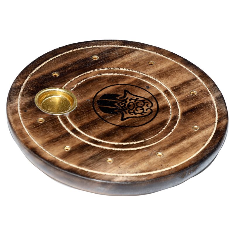 Stojan na vonné tyčinky a kužely Mangové dřevo Hamsa kulatý