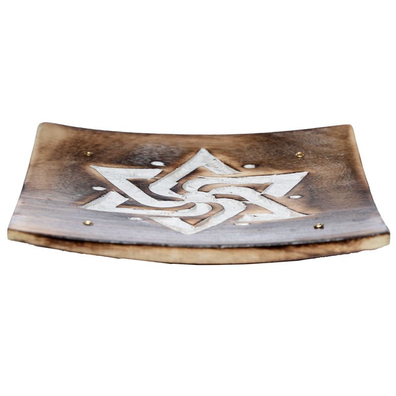 Stojan na vonné tyčinky Mangové dřevo Geometrie čtvercový - vyřezávaný