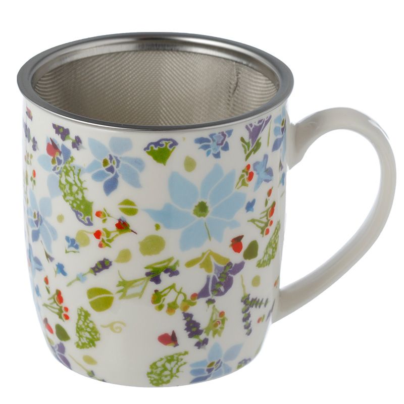Sada porcelánový hrnek, sítko na čaj a víčko Levandulová zahrada, design Julie Dodsworth