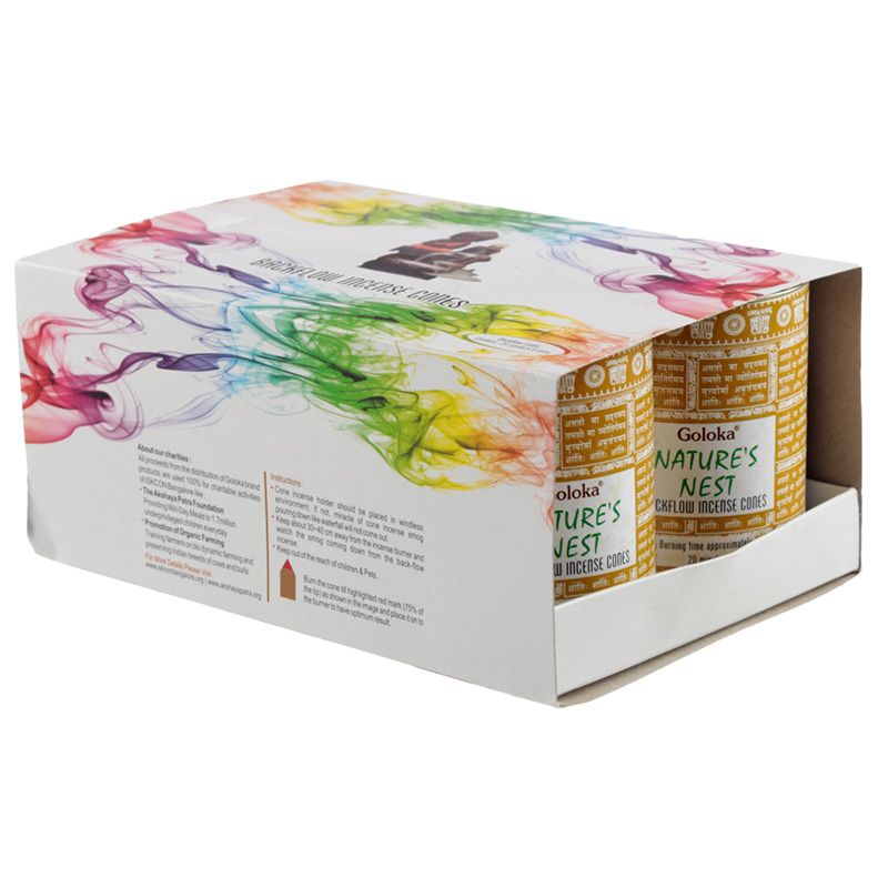 - Informace o produktu: Kouř z tohoto kadidla padá dolů jako vodopád a vytváří mlhu kolem stojánku/hořáku. Mlha může na stojánku zanechat stopy, které snadno odstraníte vlhkým hadříkem. Nikdy nenechávejte hořet bez dozoru.