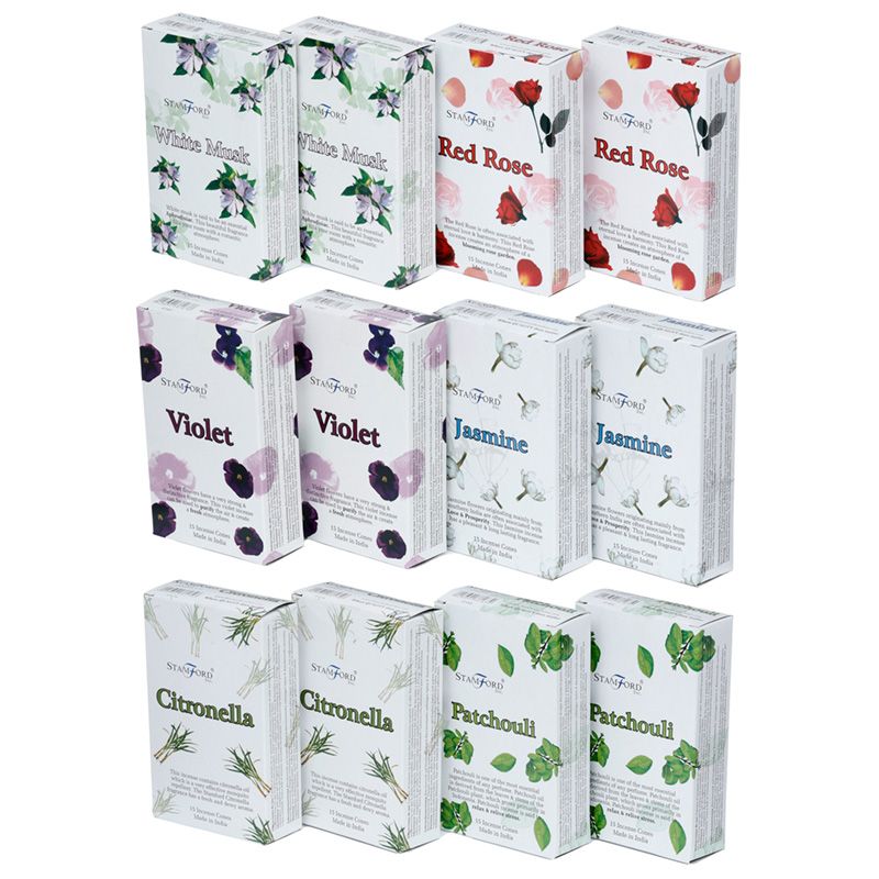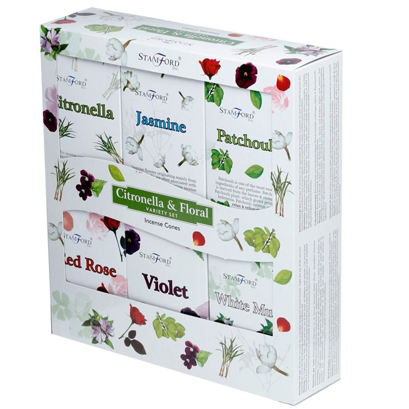 Sada 12 různých balení vonných kuželů Stamford 37356 - Citronela a Květinové