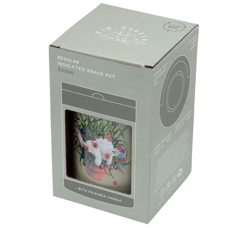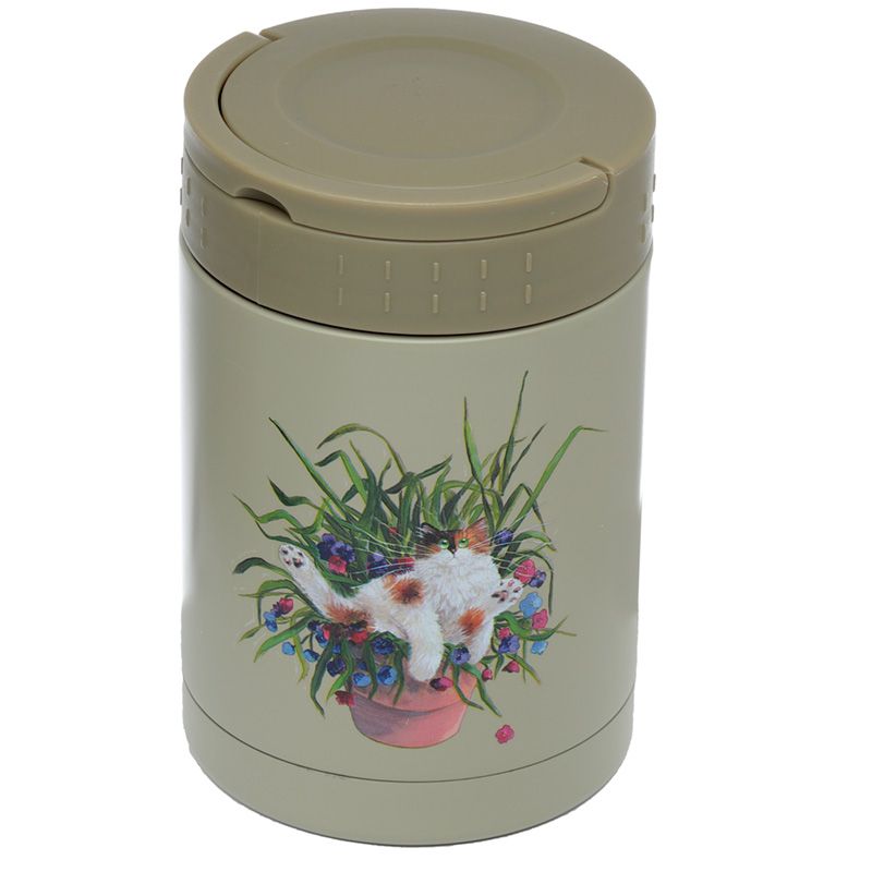 Znovupoužitelná termonádoba na jídlo z nerezové oceli 500ml Kočka v květináči - design Kim Haskins