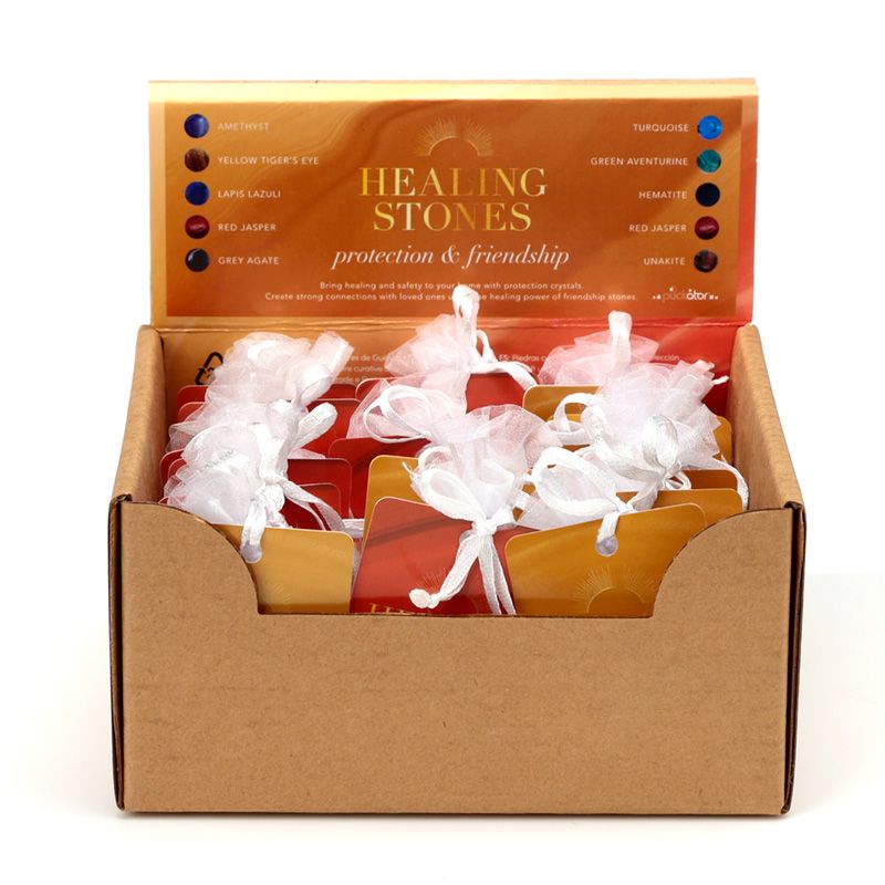 - Druhy kamenů: Ochrana (ametyst, žluté tygří oko, lapis lazuli, červený jaspis, šedý achát) - Přátelství (tyrkys, zelený avanturín, hematit, červený jaspis, unakit)
