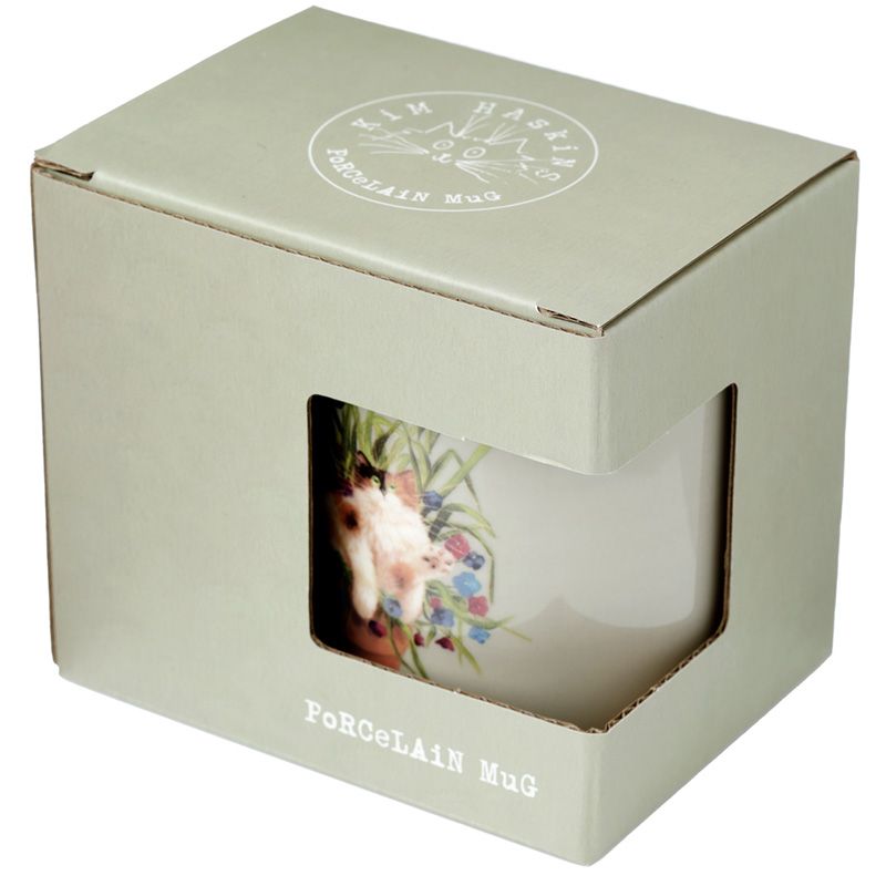 Porcelánový hrnek zelený Kočka v květináči - design Kim Haskins