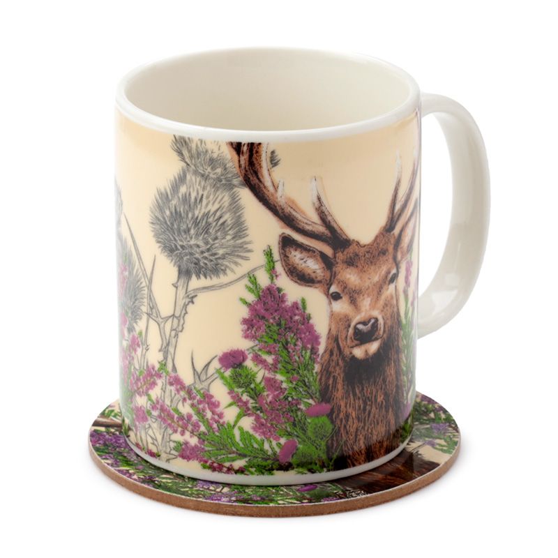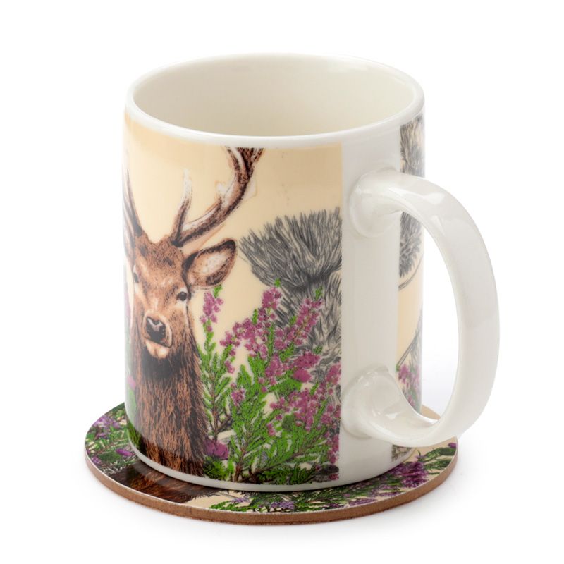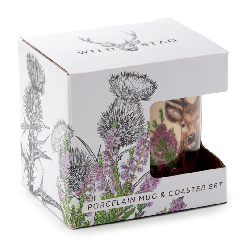 Sada vánoční porcelánový hrnek a podtácek Divoký jelen