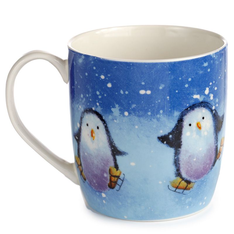 Jan Pashley Vánoční Robin a bruslí tučňáci Sada 2 porcelánových hrnků