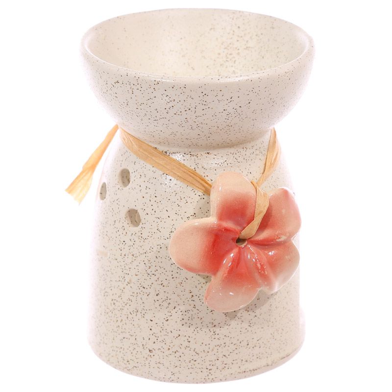 Keramická aromalampa s květinou, kropenatá