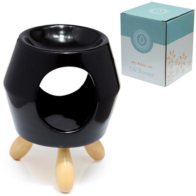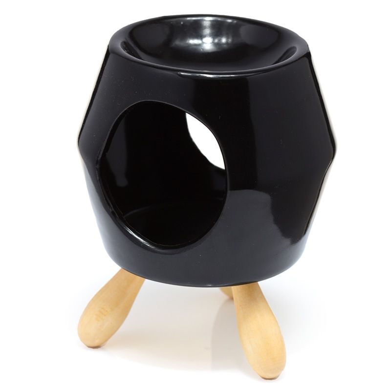 Keramická olejová aromalampa s nožkami - černá abstraktní