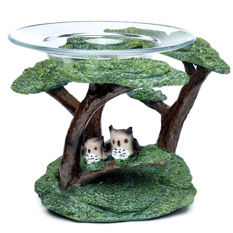 Aromalampa se skleněným talířkem - Sovy a strom
