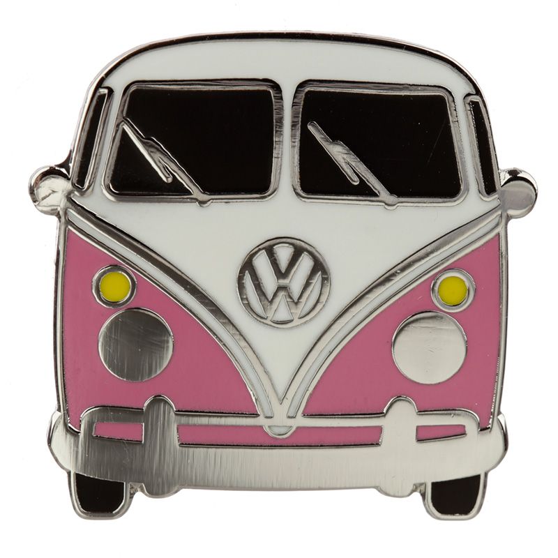 Sběratelská smaltová brož Volkswagen karavan VW T1 - růžový