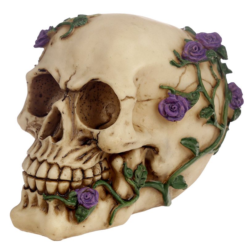 Dekorace Lebka a růže s fialovými růžemi