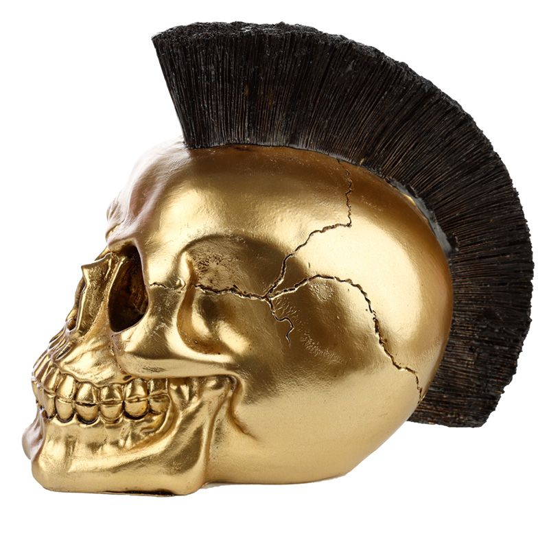 Dekorace Zlatá Punk lebka s čírem