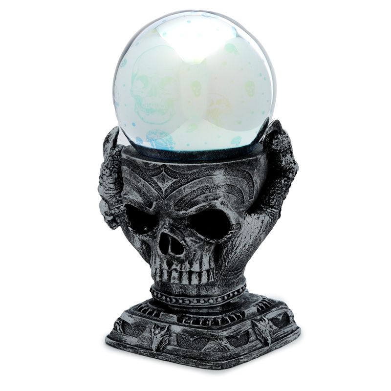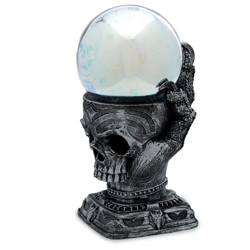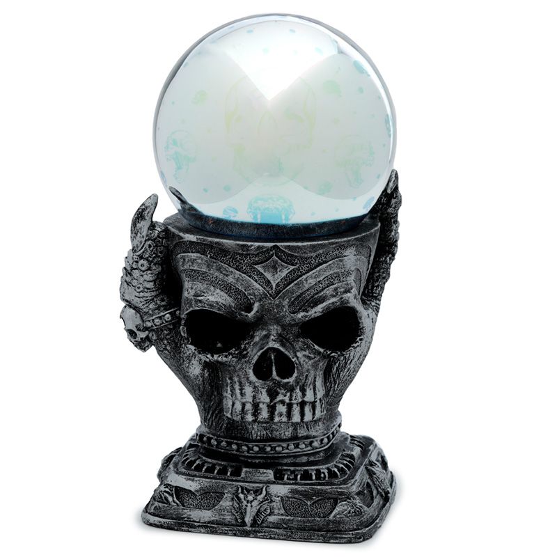 Dekorace LED Stříbrná lebka s věšteckou koulí
