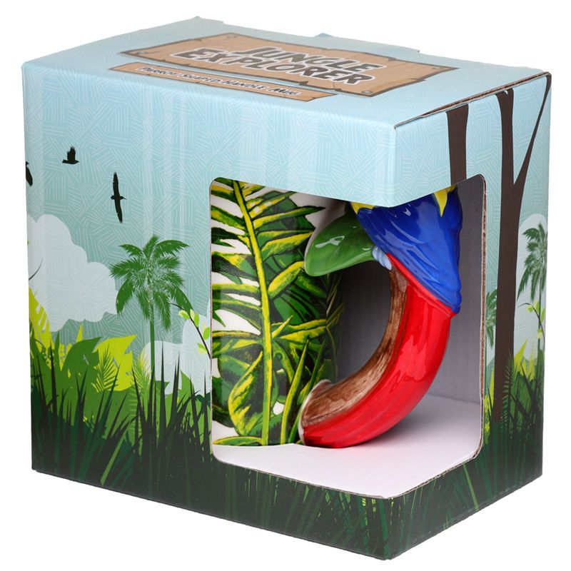 Keramický hrnek s rukojetí ve tvaru papouška