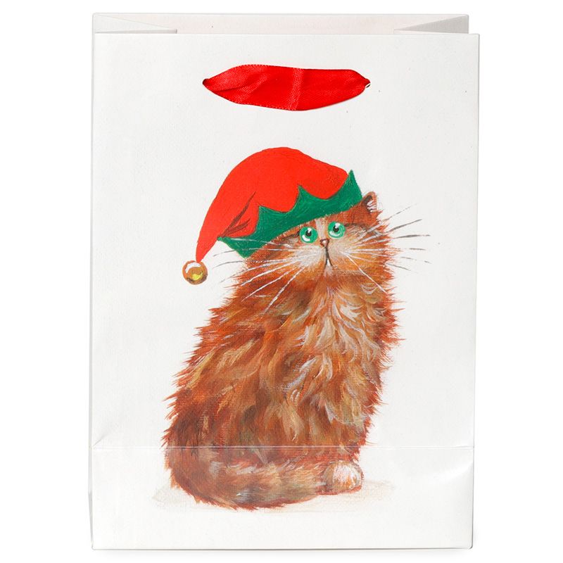 Vánoční dárková taška Kočky v čepicích, design Kim Haskins - střední