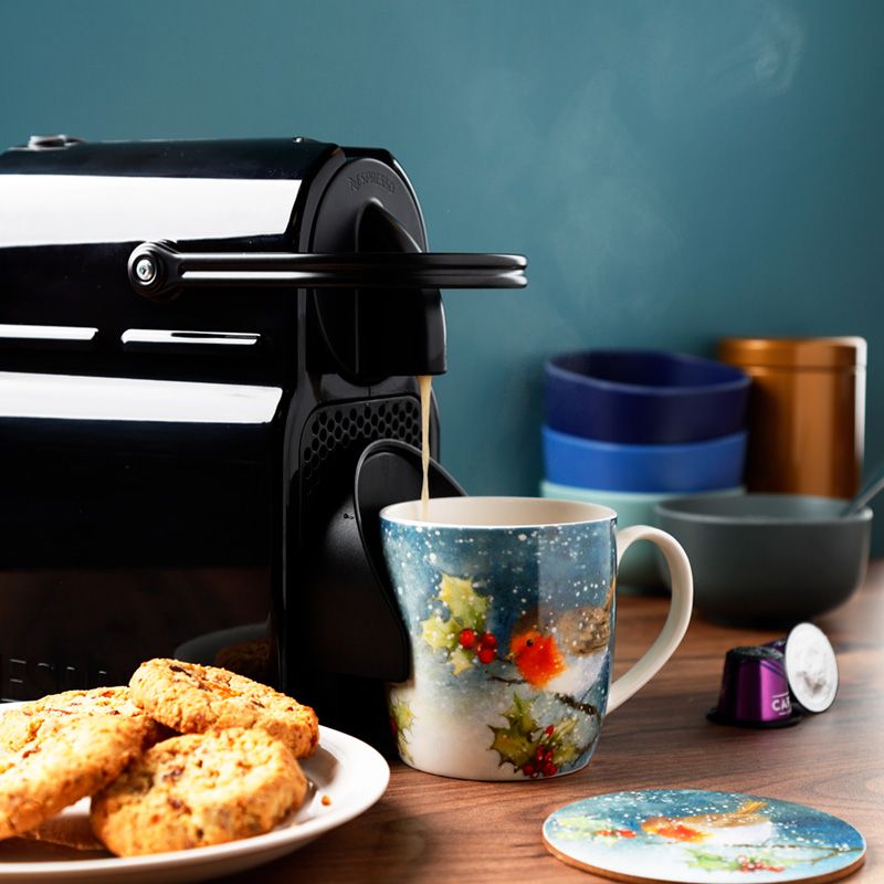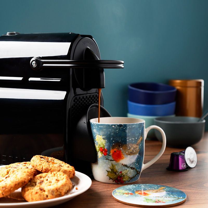 Set porcelánový hrnek & podtácek Vánoční ptáček, design Jan Pashley