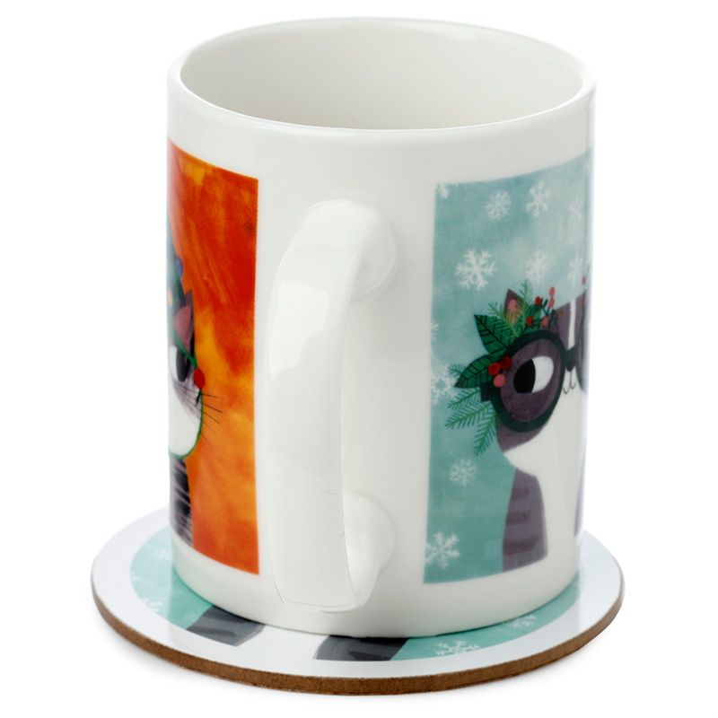 Vánoční sada porcelánový hrnek a podtácek Planeta kočka - design Angie Rozelaar