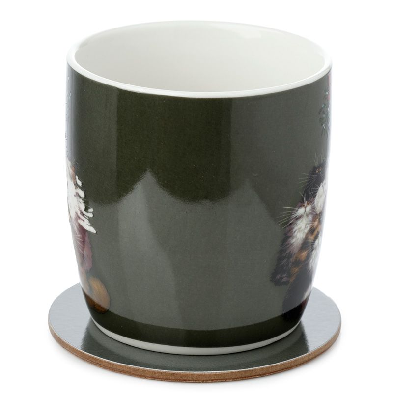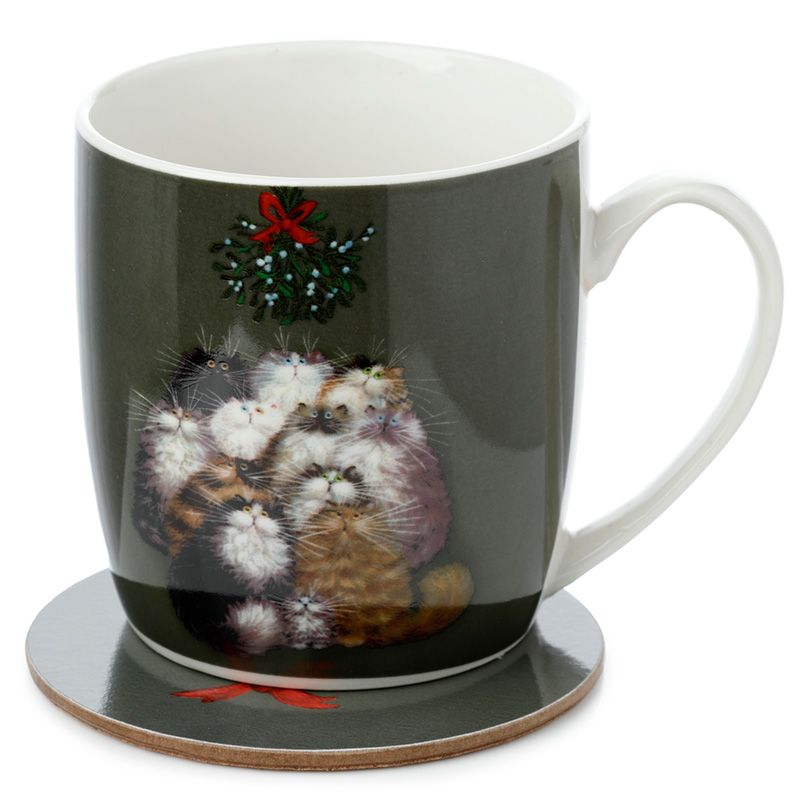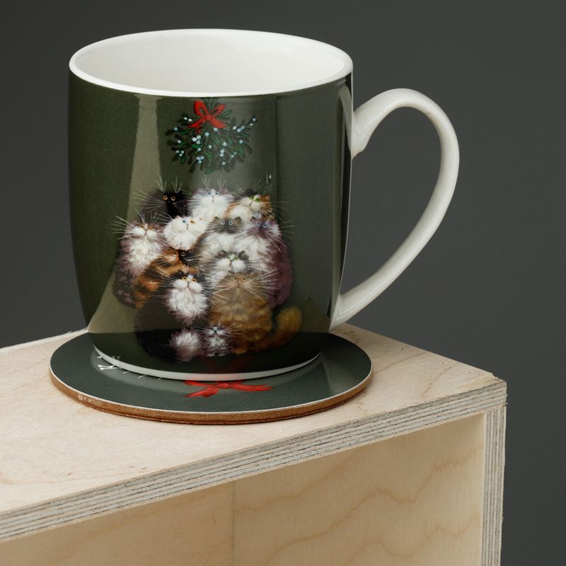 Vánoční sada porcelánový hrnek a podtácek 12 koček - design Kim Haskins