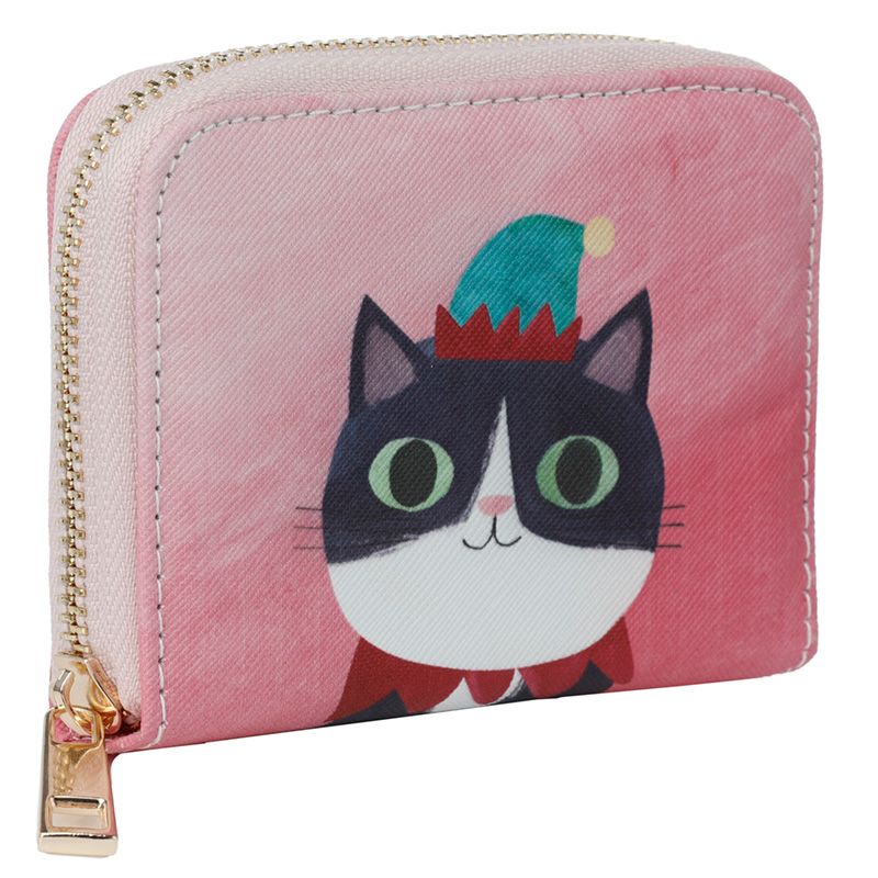 Vánoční malá peněženka se zipem Planeta kočka, design Angie Rozelaar